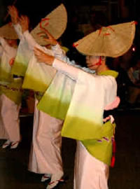(by Awa Odori dancers in Tokushima) lanterns are set afloat