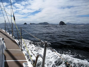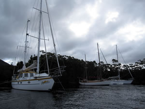 Background There's been a large time gap in cruising stories on illywhacker's website. About 6 years in fact. That's the time it took me to adjust to Lyndall's developing illness and following her passing, to build a new life in a new place. If you thought building a yacht and sailing to Alaska could be difficult, try adjusting to the loss of a partner of 50 years. It's another paradigm altogether. So it has been rather a surprise to me that I am very much enjoying each day in my new port of Kettering in Tasmania (43deg 07S, 147deg 15E). It is the home of wooden boats and serious cruising yachts. The locals are fishermen and farmers who do all they can to help newcomers from the "mainland" like me, settle in to the "Tassie" way of life. It is certainly a different climate from Australia's tropical north. The weather can be a little brisk - given to sudden changes, with sharp winds from the Antarctic nearby but often there can be warm days and magnificently clear skies. Illywhacker and I are adjusting to the climate but things are made easier by the fact that one of the great features of Kettering is it's location within the D'Entrecasteaux Channel, a truly great cruising ground with many secluded anchorages. Port Davey is a remote location but it's just a day's sail from the shelter of the Channel. The best time to attempt the passage is in the Feb/Mar period, which is when Alison, my crew and another yacht, SiIver Air with old cruising friends John and Dee Deegan aboard, made the passage.