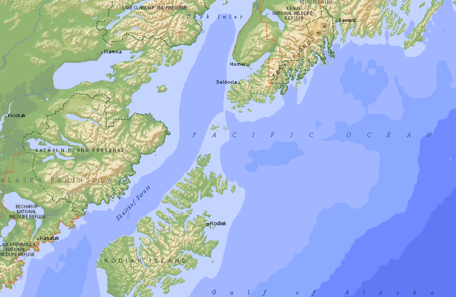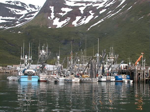 end of Prince William Sound at 60N, 146W. There are 3000 people