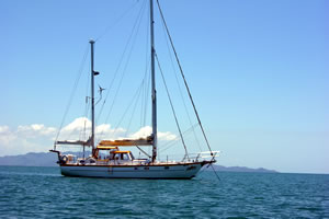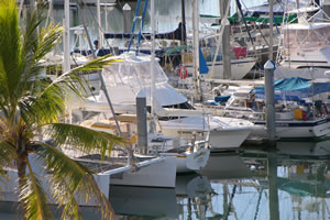 Stronger cyclones with higher surge levels are now predicted and many new "beachside" housing developments would not survive the 7 to 8 meter surges predicted. The same applies to our marina too where an up-market housing development is now on the go. A cyclone arriving at high tide with a high surge level would have us all "up on the hard". To avoid this catastrophe, smart skippers sail to the protected waters inside Hinchinbrook Island some 60nm north of Townsville and head deep into the mangroves. Others check their insurance. Illywhacker is unique - being homebuilt and packed with equipment - she could never be replaced so we hope we will be able to implement the right strategy to manage and survive a direct hit. We are lucky that day-to-day weather in the tropics is benign relative to southern parts of Australia since we are in the Tradewind belt. This usually ensures constant, predictable wind strengths and sunny skies. Cyclones occur in Summer on the tropical coasts of Australia but are usually confined to a very narrow belt - you would have to be unlucky to get clobbered! However, we just missed a hit last year by cyclone "Larry" and the Barrier Reef is suffering increased water temperatures which is causing coral bleaching. These signs suggest that things are changing but for us this is still a comfortable place to be. Picnic Bay The nearest bay to Townsville, Picnic is best suited as an anchorage in northerly winds. There is, typically for the island, a substantial sandy beach, a grassy park and interesting walks around the smooth boulders along the adjacent shoreline. Picnic is accessible by road so shopping is possible during longer stays.