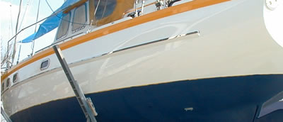 While we had been waiting for the hull to dry, the contractor sanded and sprayed the topsides with a polyurethane which I now believe was an industrial coating, not suitable for the quality finish that a yacht demands. This he did 3 times, trying to achieve the gloss finish he knew we wanted. Whether it was the paint type, the thinners or the application I don't know. The climate was perfect - dry with little wind, but the finish was a consistent orange peel effect. The Paint rep amazed me by saying that was the best finish achievable and I should be happy with the result. As the marina is full of boats sprayed on the same hardstand with a far more acceptable finish I remain unconvinced. To add to my disappointment with this person he announced there would be no warranty as he claimed the hull had not been dry enough.